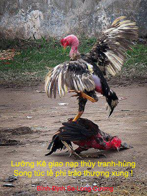 Bài Thảo-Bộ « Hùng-Kê » (雄 雞) của Miền Đất Võ Quảng-Nam gồm có 8 câu Thiệu (56 chữ), viết theo Thể Thơ Thất-Ngôn Bát-Cú Đường-Luật, mật-mã hóa những Chiêu-Thức cảm-tác từ cuộc giao-tranh giữa hai Con Gà Chọi.